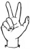 На ћирилици написано ЕМА ПУЗОВИЋ састоји се из 10 слова [?]. Исписано ћириличном једноручном азбуком за глувонеме: